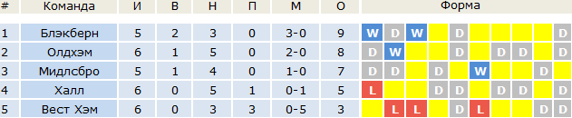 Блэкберн – Олдхэм 0:0 7/-4 --- -3/-3Блэкберн (1-4-5-1) Санчес 4 – Робертсон 0, Уильямс 0, Фримпонг 4, Гюсто -1 – Гиттенс -2, Гиббс -2, Ле Фе 2, Дж. Хендерсон -2, Кьеза 0 – Флемминг 0