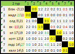 | Онлайн-табло 2 тура межсезонного турнира имени Сэра Алекса: