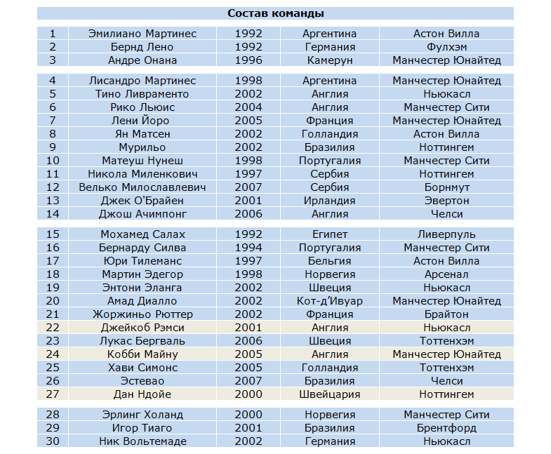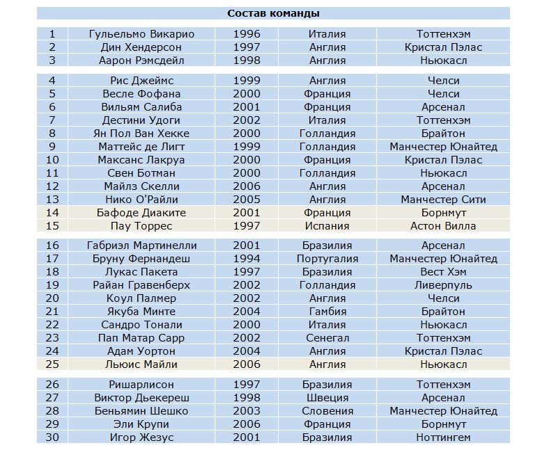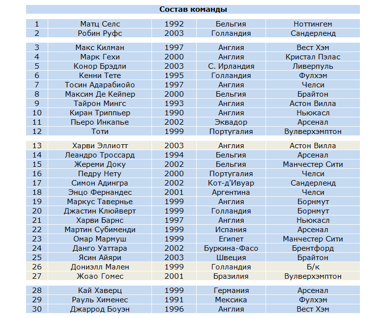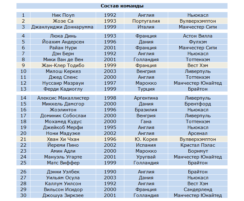 | CОСТАВЫ / УЧАСТНИКИ | |||||||||||||||||||